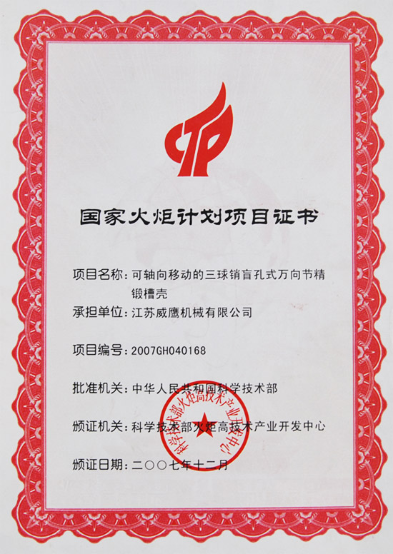 • 國家火炬計劃項目證書