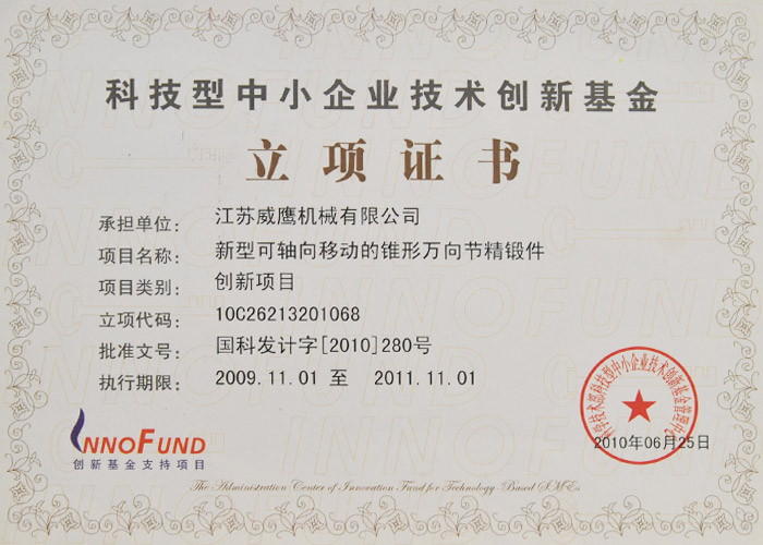 科技型中小企業技術創新基金立項及驗收證書 2009-2012年 科技部中小企業技術創新基金管理中心