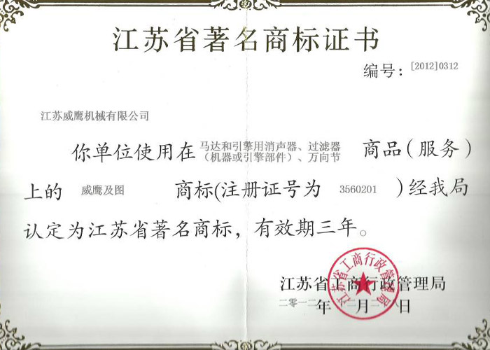 江蘇省著名商標 2012年 江蘇省工商行政管理局