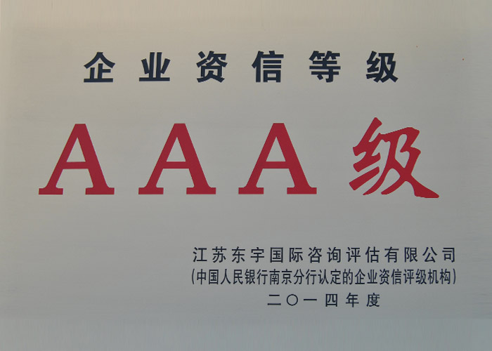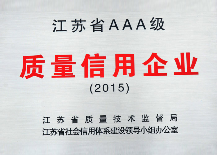 江蘇省AAA級質量信用企業 2015年 江蘇省質量技術監督局
