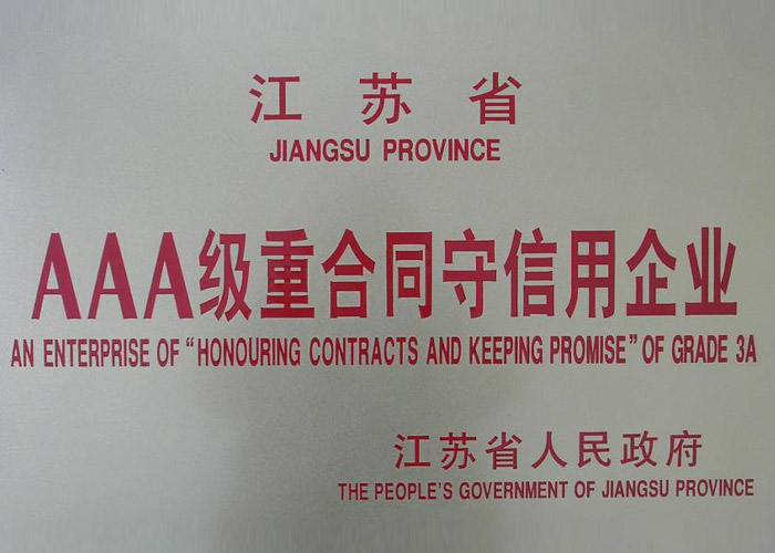 • 江蘇省AAA級重合同守信用