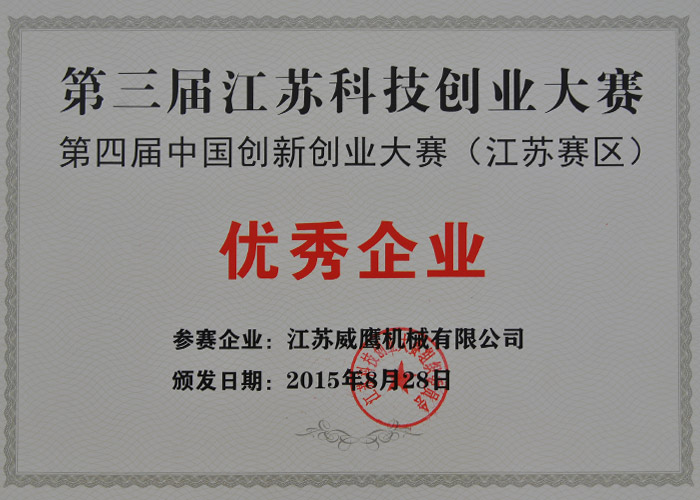 第四屆中國創新創業大賽江蘇賽區企業組三等獎 2015年 江蘇科技創業大賽組織委員會